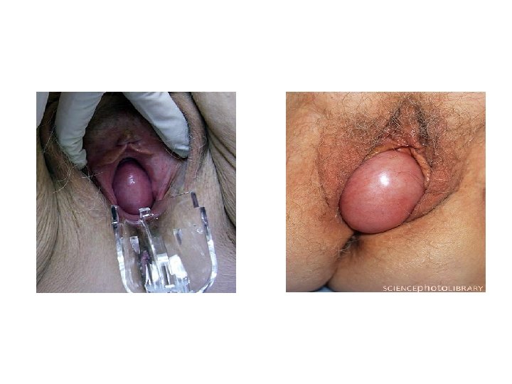 LICHAMELIJK ONDERZOEK • Abdomen: tumor, littekens • Beoordeling bekkenbodem: aanspannen, ontspannen, persen, hoesten • Uitwendige genitalia: type en gradering prolaps • Speculum: atrofie, ulceraties • VT: verzakking uterus tijdens persen, grootte uterus, ovaria