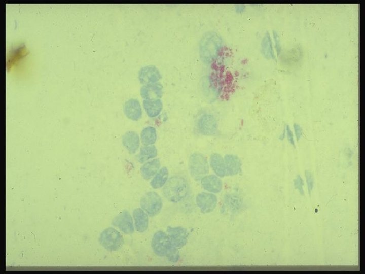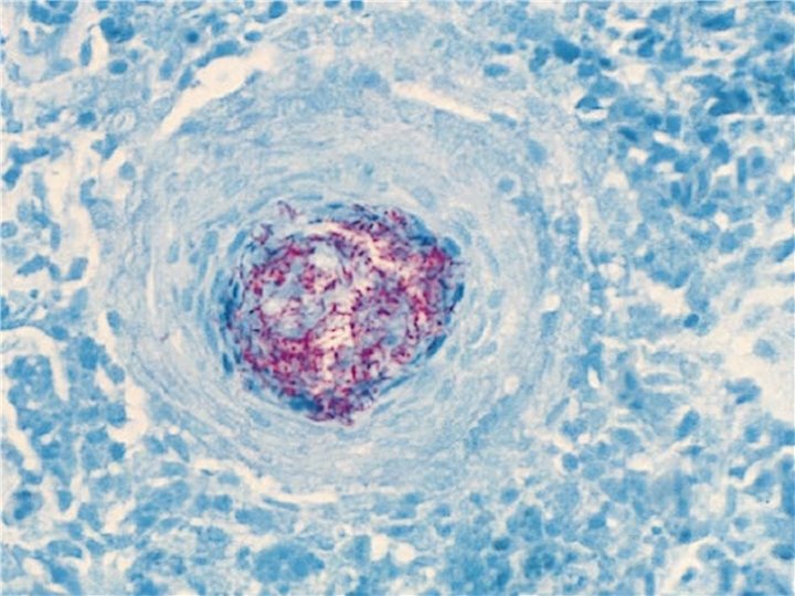 LABORATORY DIAGNOSIS 1 -Bacterioscopy • After Ziehl-Neelsen stainimng red elements are seen on the blue background 2 -Culture: • Urine, crayon, uterine flow, semen, lymph, milk, lesion tissue • 2 parts of 4% Na. OH is added to some of the morbid substances from the lesioned area. It is homogenized in a sterile mortar. 30 min at 37 ° C. Expected. The suspension was taken in a sterile centrifuge tube and centrifuged at 3500 rpm for 15 -20 min. centrifuged. After transferring the upper liquid into a disinfectant container, add 1 -1. 5 ml of distilled water onto the sediment. The p. H is adjusted to 7, 2. 0, 05 -0, 1 ml is added to these prepared inoculum media. For this purpose, the Löwenstein-Jensen nutrient is used. The seed is planted in both glycerin and glycerin-free media, incubated at 37 -40 ° C for 8 -12 weeks