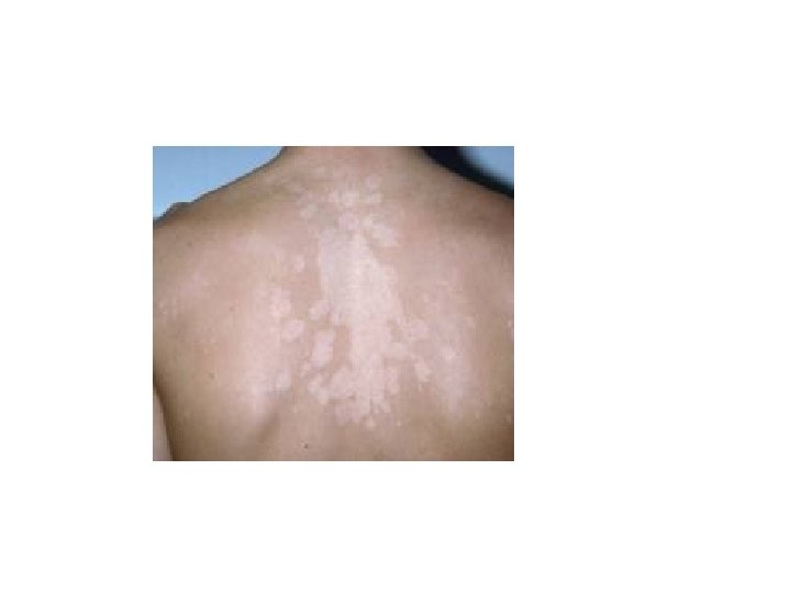 Cas particuliers 2. Pytyriasis versicolor (levure Malassezia furfur) • Affection bénigne cutanée: – – Tâches chamois. Traitement local+ Shampoing.