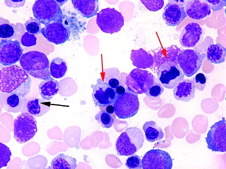 Diagnosis WHO Classification of myelodysplasia Entity Bone marrow Cytogenetics blasts 5 q- syndrome <5% 5 q- only Refractory anaemia <5% various Refractory anaemia ring sideroblasts <5% various Refractory cytopenia multilineage dysplasia (RCMD) <5% various RCMD-ring sideroblasts <5% various Refractory anaemia excess blasts-1 (RAEB-1) 5 -9% various RAEB-2 10 -19% various Chronic myelomonocytic leukaemia -1 (CMML-1) <10% various CMML-2 10 -19% various