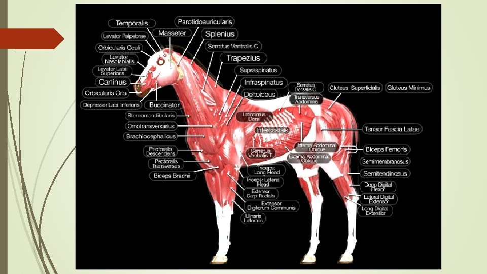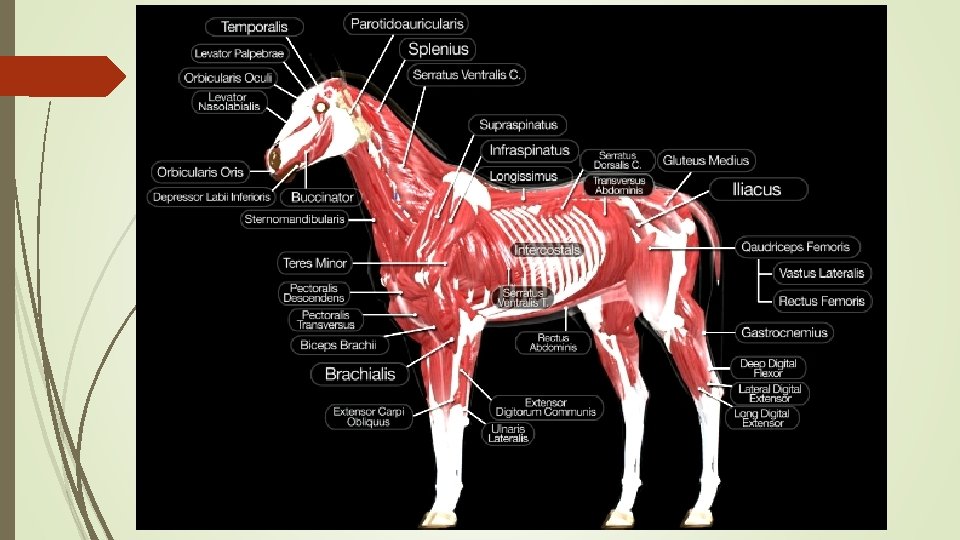 EQUİDE , LATERAL YÜZ DERİN KASLAR M . g lu te M. iliaci us m ed iu s M. priformis M. biceps femoris M. semimembranosus M. rectus femoris M. semitendinosus M. va stu s l ate ral is M. gluteus superficialis M. biceps femoris M. gastrocnemius caput laterale