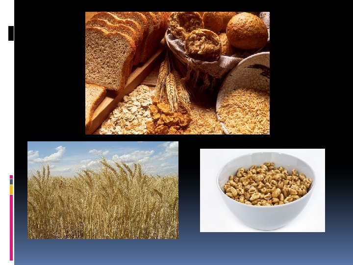 Grains Mostly made up of wheat crops and a variety of different seeds. Many foods like bread and cereal are source of grains