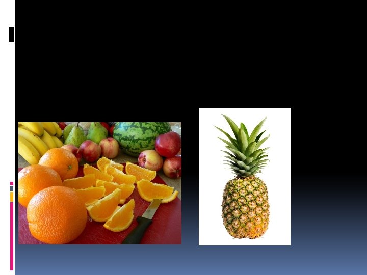 Fruits Usually grown from trees and the earth, foods such as bananas, apples and pears. Usually made of natural sugars