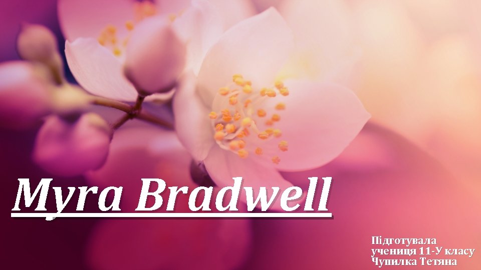 Myra Bradwell Myra Colby Bradwell (February 12, 1831 – February 14, 1894) was a publisher and political activist. She attempted to become the first woman to be admitted to the Illinois bar, but was barred by the Illinois Supreme Court and the U. S. Supreme Court. The Illinois Supreme Court finally granted her a law license in Illinois in 1890.