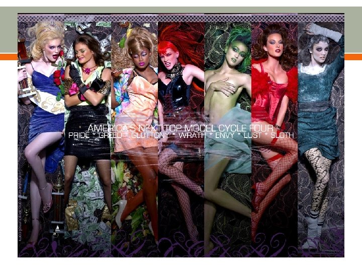 Seven……. Seven Heavenly Virtues Chastity Temperance Charity Diligence Patience Kindness Humility Seven Deadly Sins Lust Gluttony Greed Sloth Wrath Envy Pride