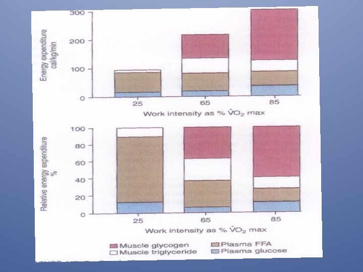 Energy • Not a nutrient-energy comes from burning through chemical reactions the nutrients in feed like carbohydrates, and fats and even protein plus the by-products of fermentation of fiber in the hind gut namely the VFA’s. • These nutrients are stored as glycogen in the liver and skeletal muscle in the case of carbohydrates, and fat in various fat deposits. • Energy is moved by sources allowing formation of a high energy compound called ATP • Aerobic energy delivery –a function of HR, stroke volume and O 2 extraction by muscle –is the result of a complex chain of events involving the oxygen transport chain. The by product is Co 2 and water. Oxygen is required. It is slow but yields a high level of energy over time.