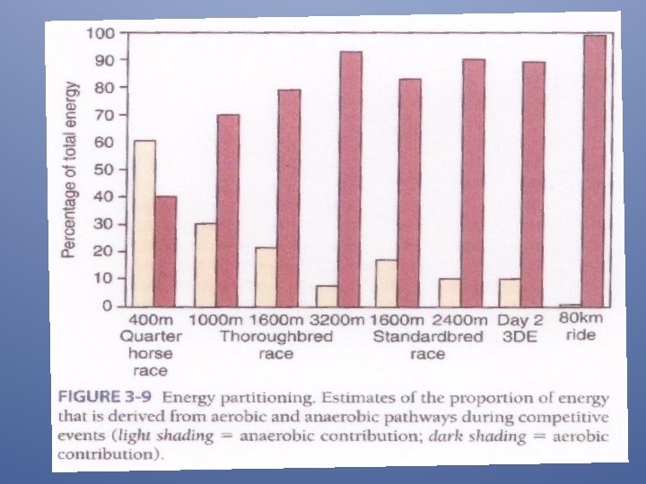 The athletic capacity related to High maximal aerobic capacity (or VO 2 max) and CV system. Large intra muscular stores of energy , particularly glycogen High respiratory capacity of skeletal muscle Splenic contraction , increases oxygen carry capacity of blood by 50% soon after the onset of exercise. Highly efficient and adaptable gaits Well-developed capacity for effective thermoregulation. Energy is produced either with oxygen or without , the aerobic or anaerobic pathways The horse has great athletic capacity. The number one need is energy. Nutrients provide energy, the fuel for all metabolism.