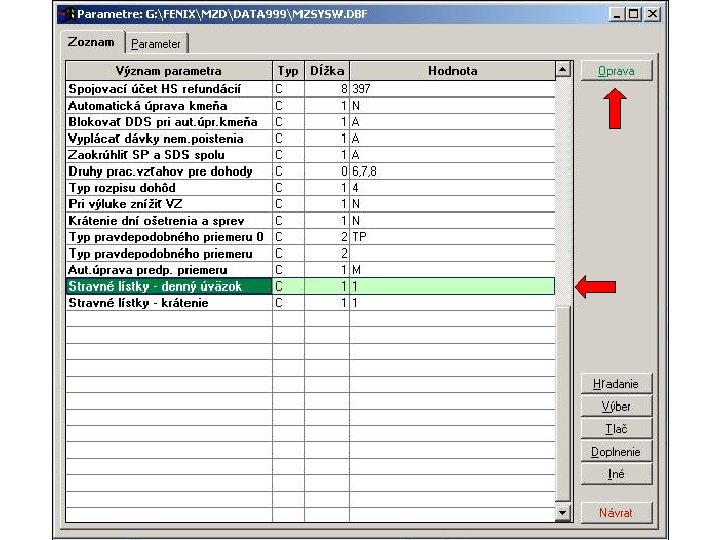 Naplnenie súboru údajmi o základnom nároku na stravné lístky