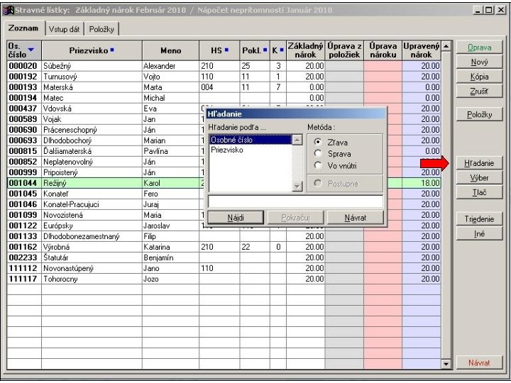 Nápočet neprítomností za všetkých pracovníkov z obdobia, ktoré je určené ako obdobie za ktoré sa požaduje nápočet neprítomností