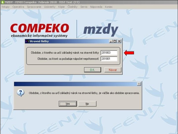 1. V prvom kroku je potrebné zadať obdobie, za ktoré sa určí základný nárok na stravné lístky a obdobie, za ktoré sa požaduje nápočet neprítomností. Štandardne sa ako preddefinovaná hodnota pre obdobie, z ktorého sa určí základný nárok ponúkne bežné obdobie spracovania a pre obdobie, za ktoré sa požaduje nápočet neprítomností sa ponúkne obdobie predchádzajúce obdobiu spracovania PS MZDY. 2. Obdobie, z ktorého sa určí základný nárok na stravné lístky môže byť nižšie, rovnaké alebo vyššie ako obdobie spracovania (nárok sa určí z obdobia predchádzajúceho obdobiu spracovania, bežného obdobia spracovania alebo z obdobia nasledujúceho po období spracovania). 3. Obdobie, za ktoré sa požaduje nápočet neprítomností môže byť nižšie alebo rovnaké ako obdobie spracovania (nápočet neprítomností sa vypočíta z obdobia predchádzajúceho obdobiu spracovania alebo z bežného obdobia spracovania).