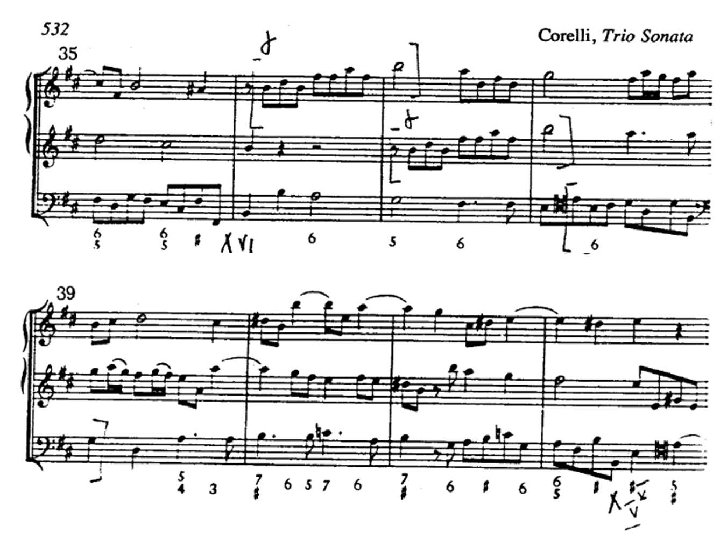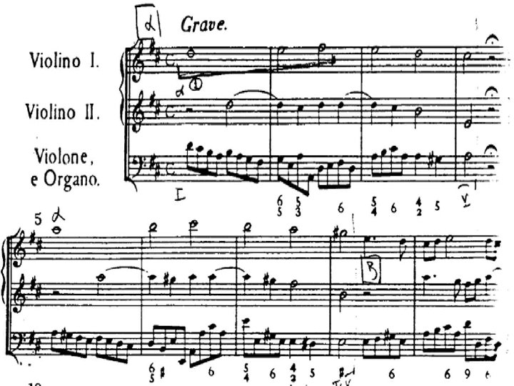 Arcangelo Corelli �Si forma perciò con la sonata violinistica bolognese (senza esserne stato l’inventore) e con il concerto grosso romano, impiegato per la prima volta da Alessandro Stradella �Nel suo stile ritroviamo gli echi della grande polifonia vocale romana e del contrappunto osservato (Palestrina), ma anche gli stilemi espressivi e i procedimenti vocali della contemporanea produzione teatrale (cantabilità dei movimenti lenti)
