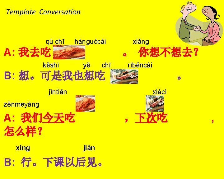 xiǎo cè yàn 小测验 (Quiz) 2. Translation (6 分) A: Do you know my friend Frank? B: I know him. A: Do you want to go eat Korean food with us? B: OK. .