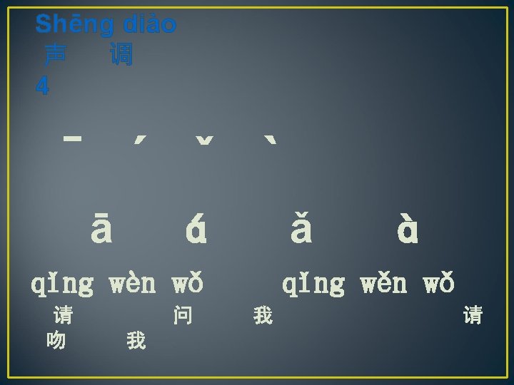nǐ 你 hǎo 好! pīn yīn 拼 音 hàn zì 汉 字 huruf mandarin Shēng mǔ 声 母 konsonan awal Yùn mǔ 韵 母 vokal Shēng diào 声 调 nada