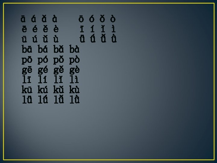 ai ei ao ou ua uo uai ui g gai gei gao gou gua guo guai gui k kai kao kou kua kuo kuai kui h hai hei hao hou hua huo huai hui n nai nei nao l lai lei lao lou ia ie iao iu üe nuo nie niao niu nüe luo lia lie liao liu lüe