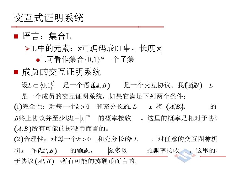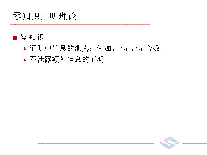 零知识证明理论 n 关于“知识” l “ipsa l scientia potestas est” Francis Bacon Ø 信息 Ø 能力 3