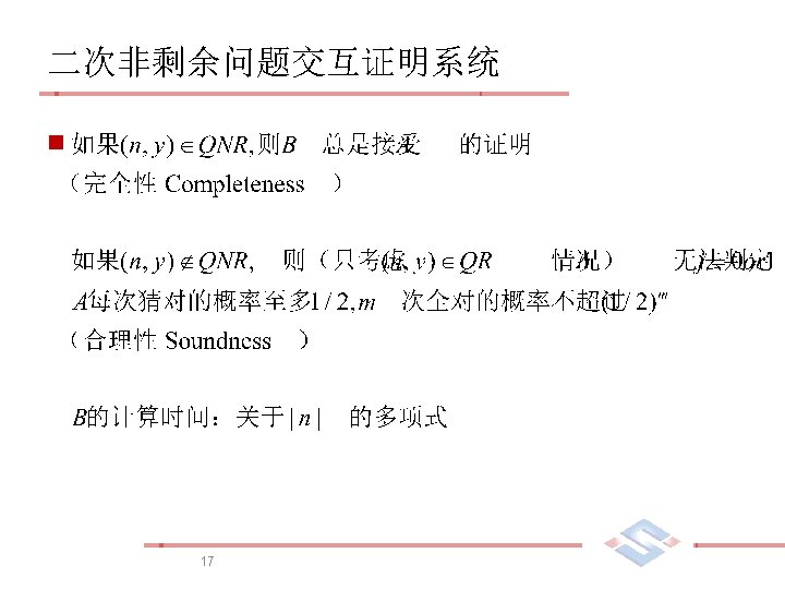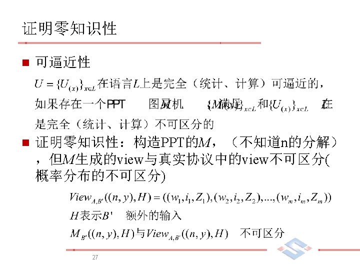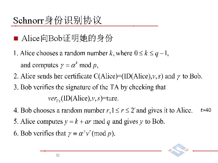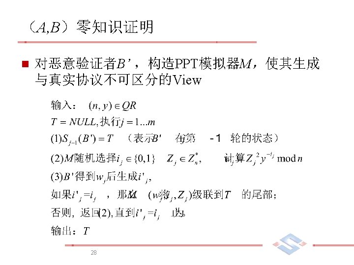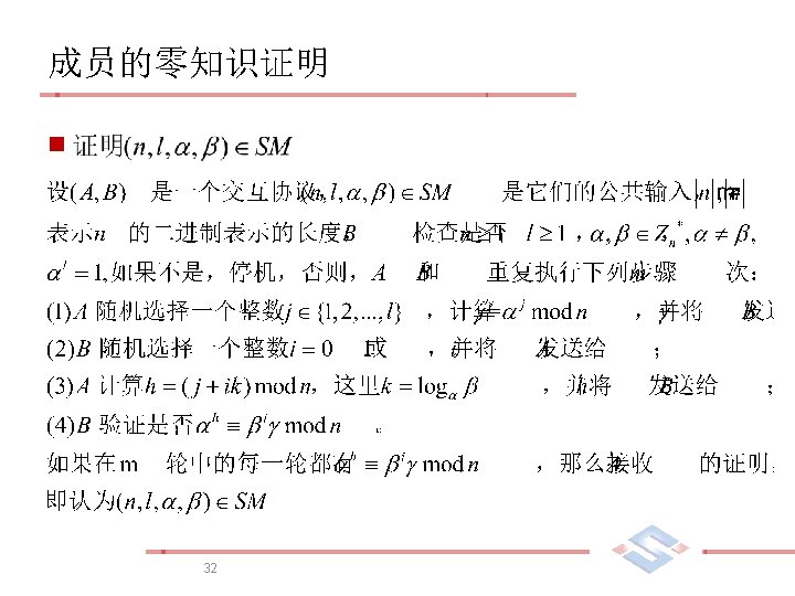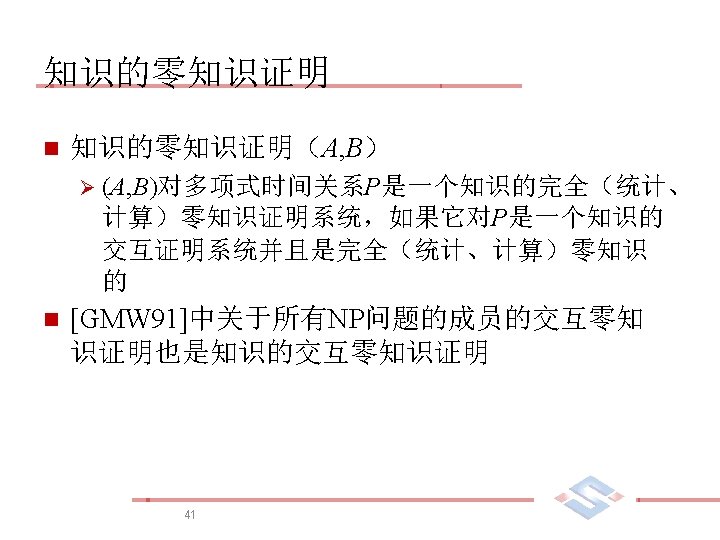 APPLIED CRYPTOGRAPHY 知识的零知识证明 SCHOOL OF MATHEMATICS 38