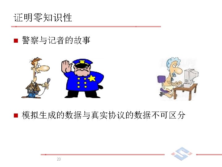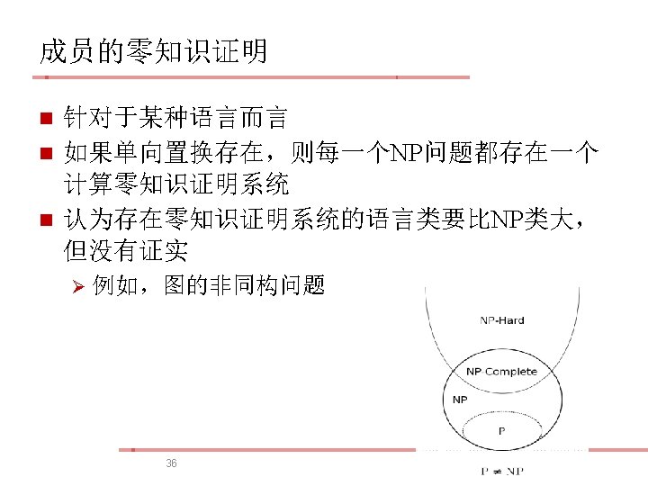零知识证明理论 n 零知识证明 Ø Very informally, a zero-knowledge proof system allows one person to convince another person of some fact without revealing any information about the proof. l Protocol: Prover and Verifier l Introduced by Goldwasser, Micali and Rackoff in the early 1980 s l 应用 5