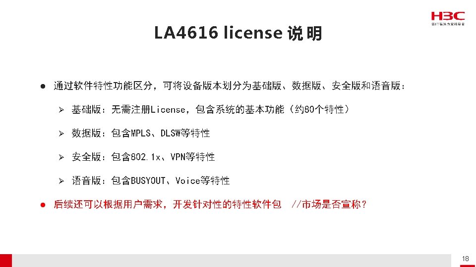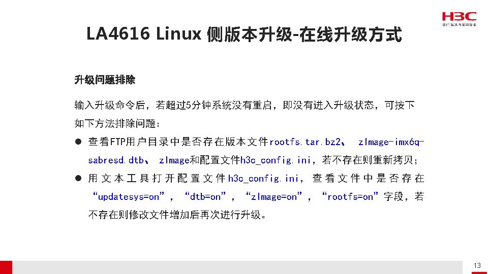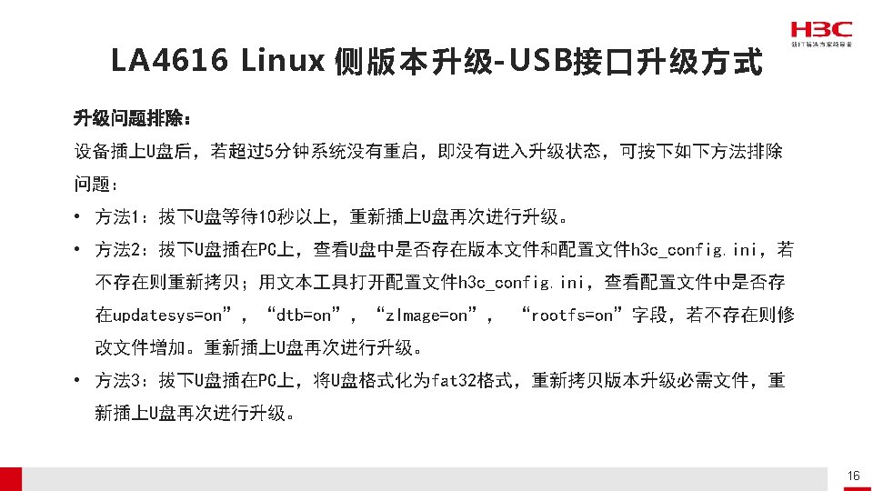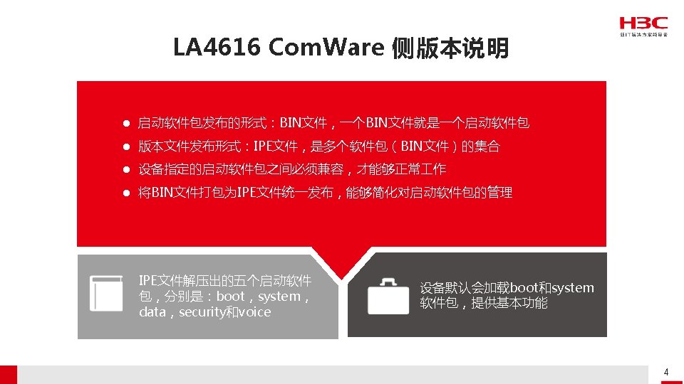 01 01 LA 4616 Com. Ware 侧版本说明 02 LA 4616 Linux 侧版本说明 03 LA 4616 License 说明 04 LA 4616 Linux 侧基本维护 Confidential 秘密 www. h 3 c. com 17 17 17