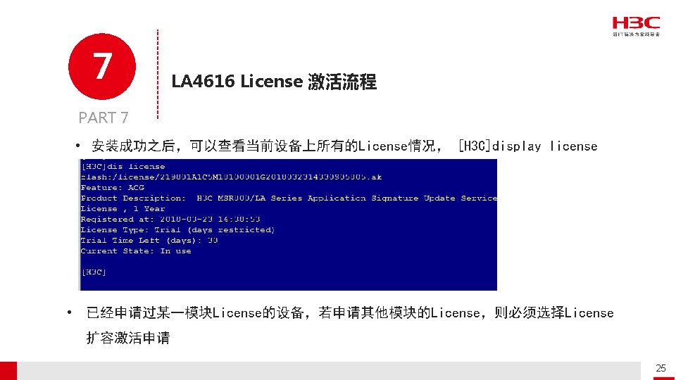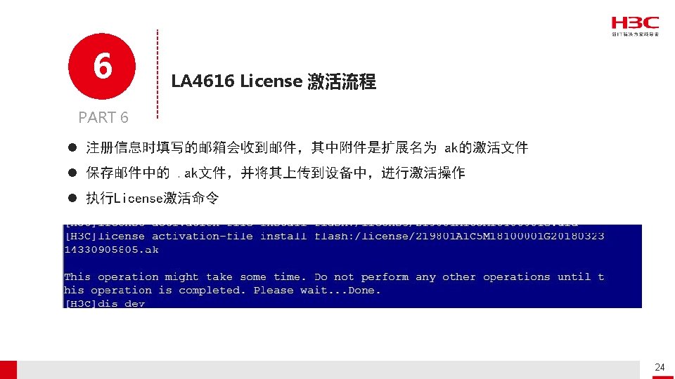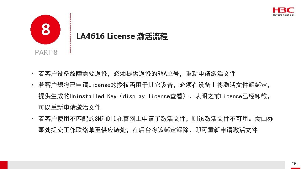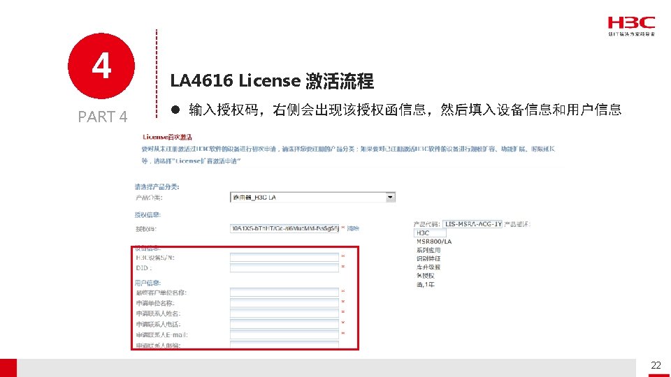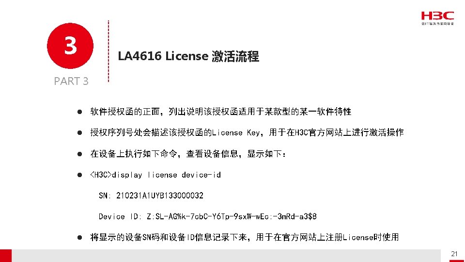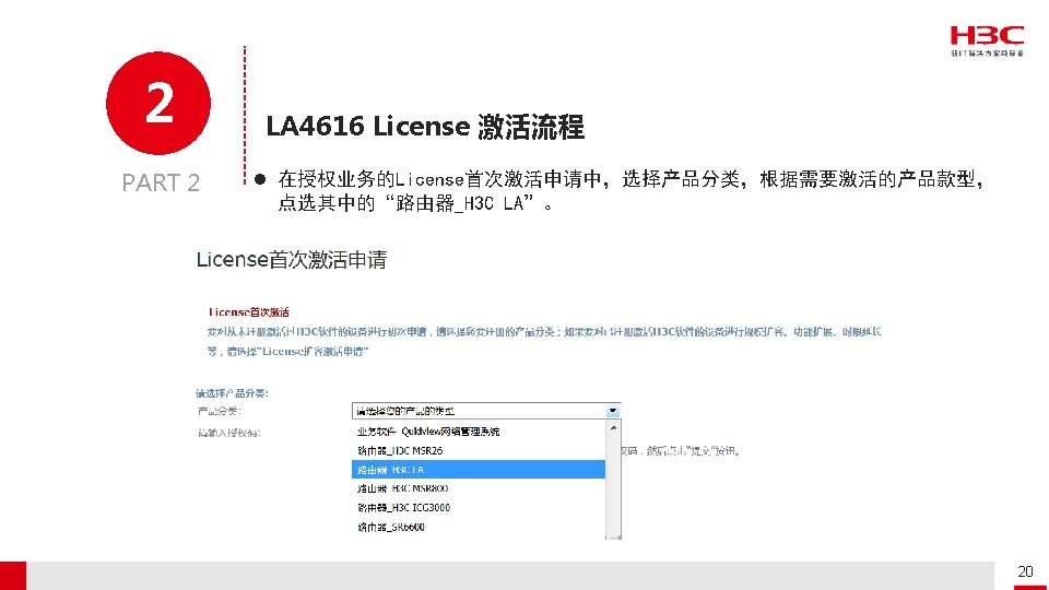1 PART 1 LA 4616 License 激活流程 登录H 3 C官方网站,选择服务支持→授权业务→License首次激活申请 Confidential 秘密 www. h 3 c. com 19 19 19