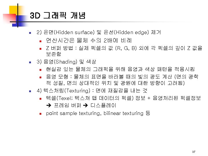 CIE(Commission Internationale de l'Eclairage) 모델 n n n RGB -> XYZ 컬러 모델(1931) XYZ: CIE 표준 원색(CIE standard primaries) n X: fx n Y: fy (luminous-efficiency function) n Z: fz C = XX + YY + ZZ (X, Y, Z: CIE primaries에 적용된 weights) (X + Y + Z)에 대하여 정규화된 값(normalized amount)을 구하면 x = X/(X + Y + Z) y = Y/(X + Y + Z) z = Z/(X + Y + Z) x + y + z = 1, z = 1 - x - y 모든 색상은 x, y, Y(luminance) 값만 알면 표현 가능, 나머지는 아래와 같이 계산 (x/y, z/y) X = (x/y)*Y Y=Y Z = ((1 -x- y)/y)*Y = (z/y)*Y 16