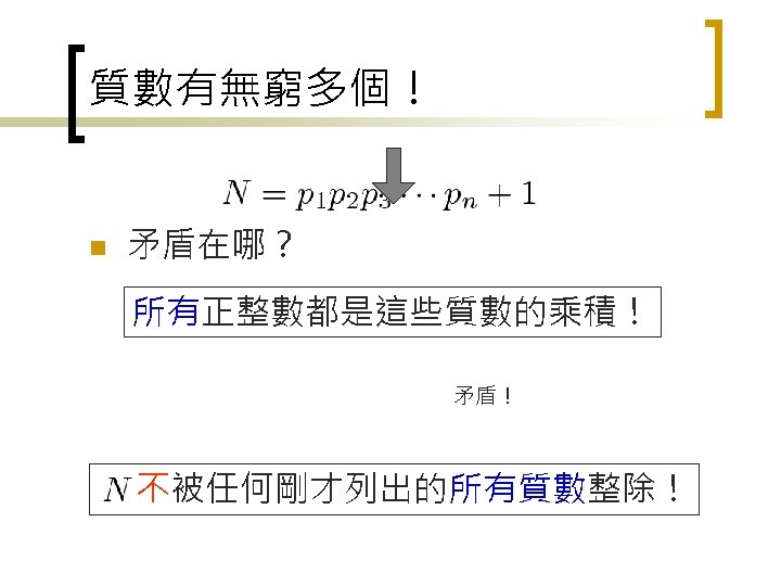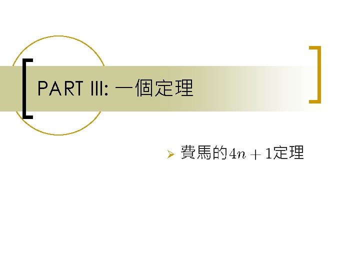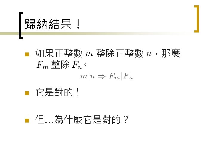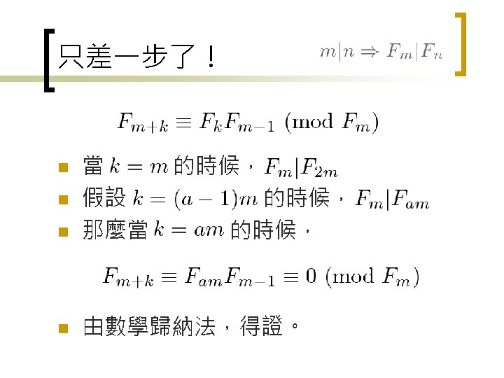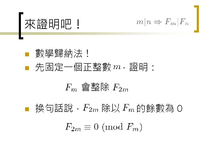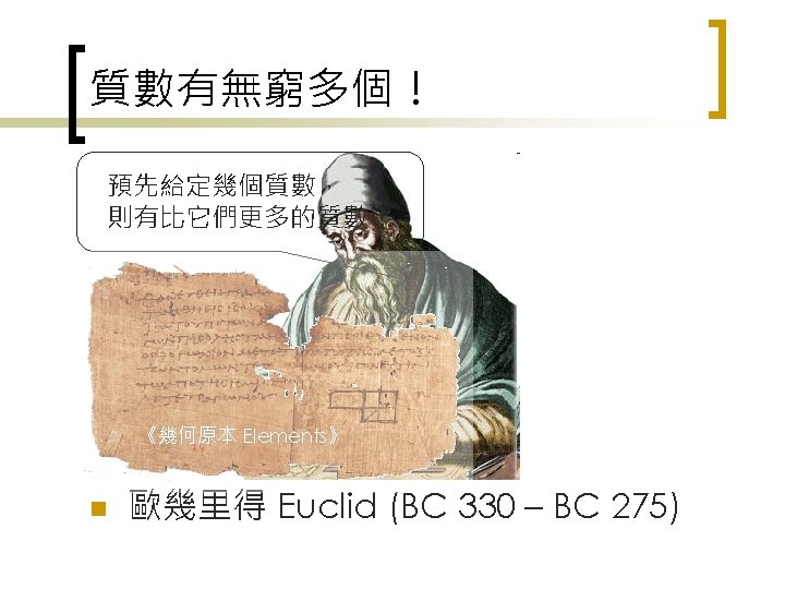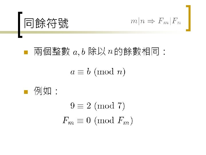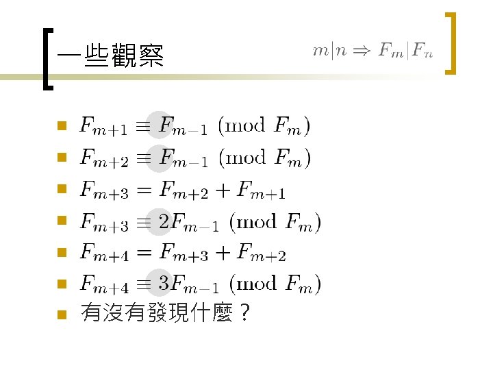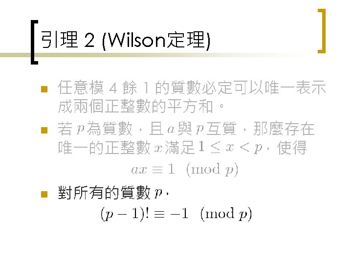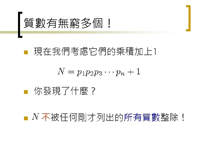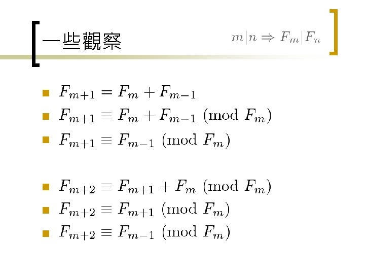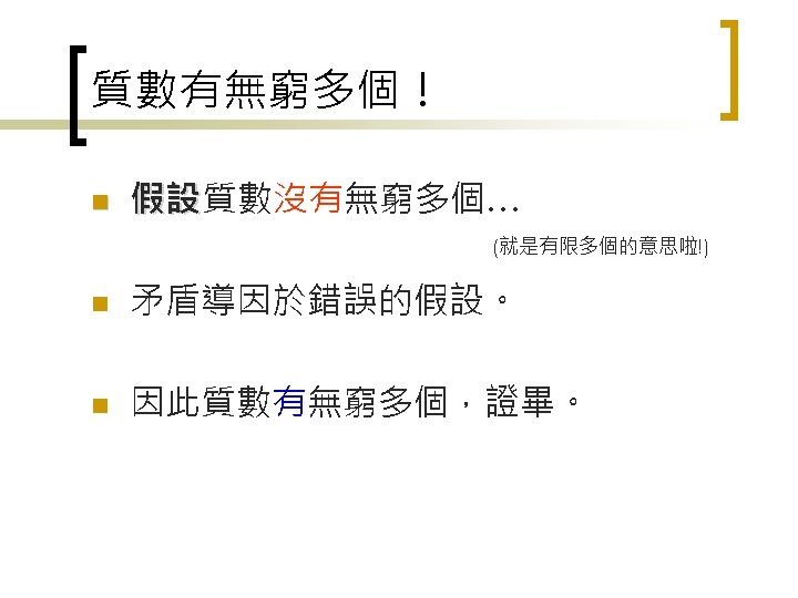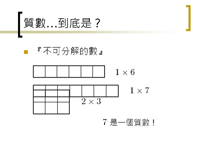Lucas-Lehmer 質數檢驗法 n n 定義一個遞迴數列: 前幾項是 4, 194, 37634, 1416317954, 2005956546822746114, 4023861667741036022825635656102100994, 16191462721115671781777559070120513664958590125499 … 158514329308740975788034 當 是奇質數的時候, 是質數若且唯若
