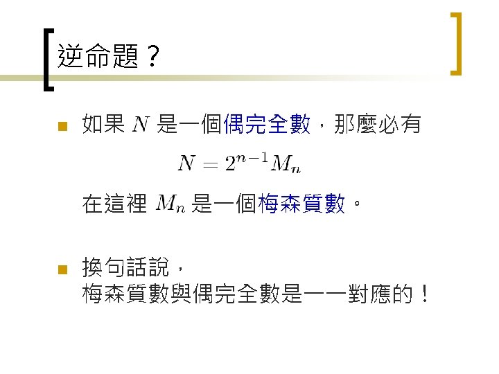 梅森質數的檢驗 n n Édouard Lucas (1842 – 1891) Derrick Henry Lehmer (1905 – 1991)