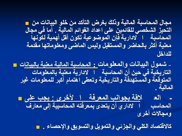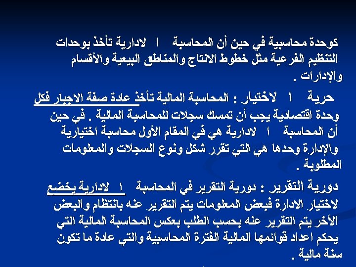 Introduction n Accounting - a process of identifying, recording, summarizing, and reporting economic information to decision makers in the form of financial statements n Financial accounting - focuses on the specific needs of decision makers external to the organization, such as stockholders, suppliers, banks, and government agencies