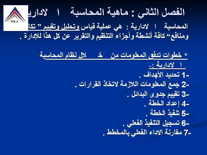 The Nature of Accounting n The accounting system is a series of steps performed to analyze, record, quantify, accumulate, summarize, classify, report, and interpret economic events and their effects on an organization and to prepare the financial statements.