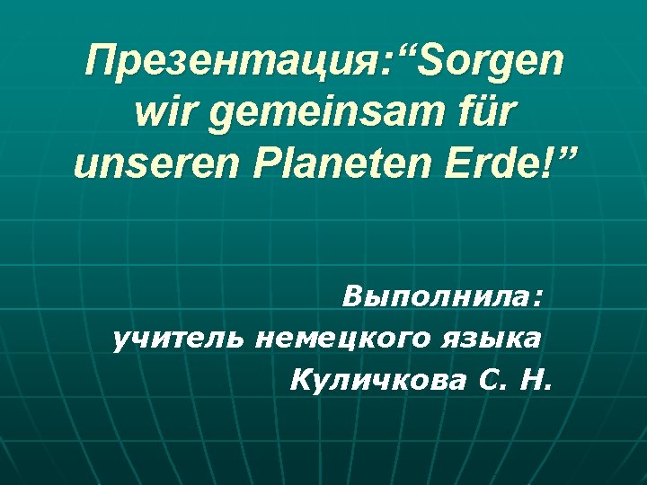 Тема урока: n “Sorgen wir gemeinsam für unseren Planeten Erde!”
