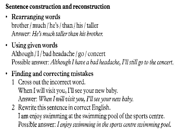 Types of mistakes by Arab learners: 1 - Omission of be and have - Ahmed in the house - The book with me 2 - Verb- subject instead of subject-verb order - Reads the boy his lesson - laughs the boy 3 - Repetition of the subject as a pronoun - The only son in the family he creates a lot of trouble. - Students they are allowed to change their subjects.