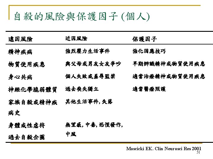 SAD PERSONS (Patterson et al, 1983) S 性別 A 年齡 D 憂鬱/躁鬱 情感疾病