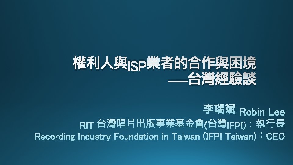 n TIPA台灣智慧財產權聯盟 (Taiwan Intellectual Property Alliance)成員: 1. RIT 台灣唱片出版事業基金會 (Recording Industry Foundation in Taiwan) - IFPI Taiwan 2. TISF 台灣國際影視基金會Taiwan International Screen Foundation - MPA Taiwan 3. BSA Taiwan台灣商業軟體聯盟Business Software Alliance – BSA Taiwan 4. CISA中華民國資訊軟體協會 Information Service Industry Association of R. O. C. 5. TBPA 台灣國際圖書業交流協會 Taiwan Book Publishers Association