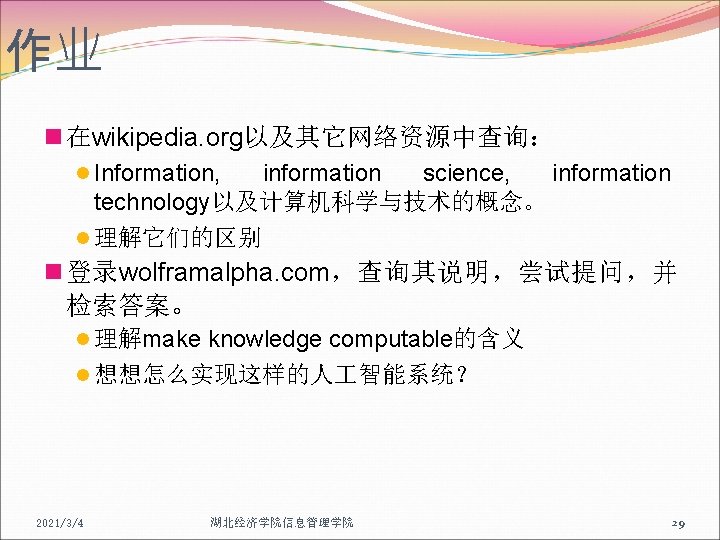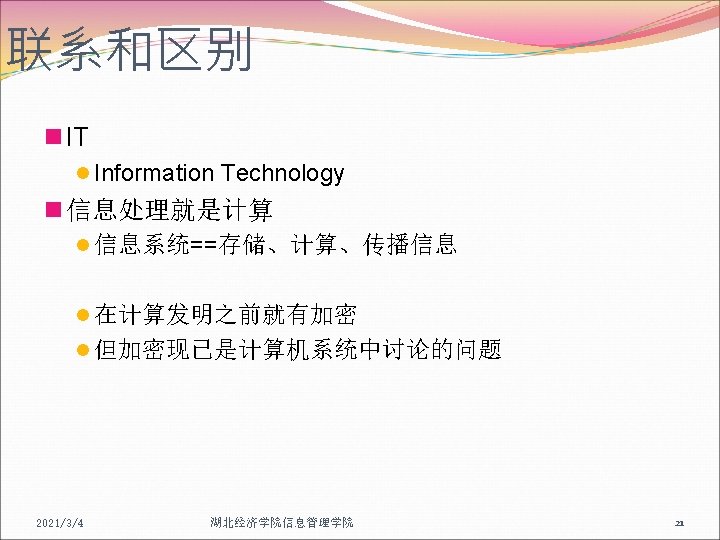 Just Do IT ! IT=Information Technology 2021/3/4 湖北经济学院信息管理学院 28