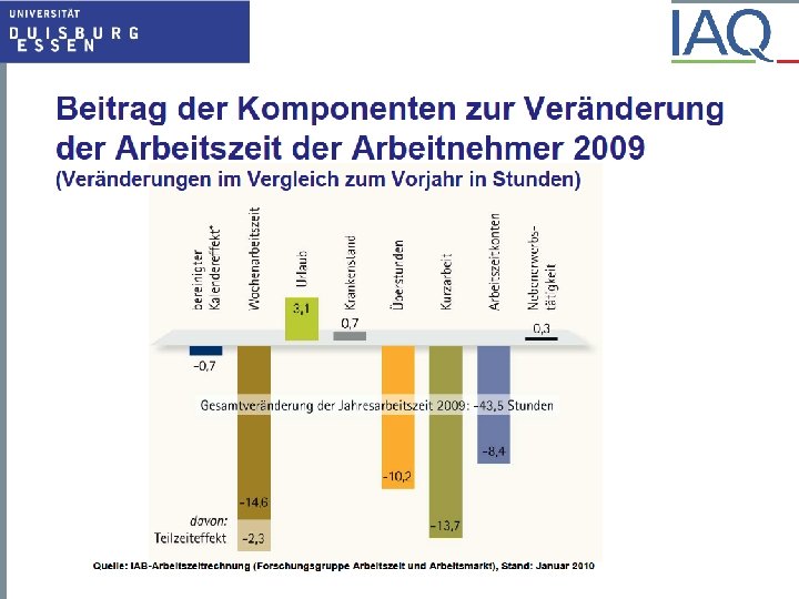 Arbeitszeit und Beschäftigung, M&E-Industrie (Deutschland, 2000 -2008) Beschäftigte in 1. 000 (ohne Leiharbeit); gewöhnliche Wochenarbeitszeit von abhängig in Vollzeit Beschäftigten Quellen: Gesamtmetall (Beschäftigte); Mikrozensus / Eigene Berechnungen IAQ (Arbeitszeit)