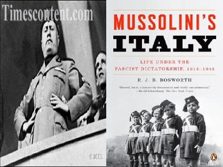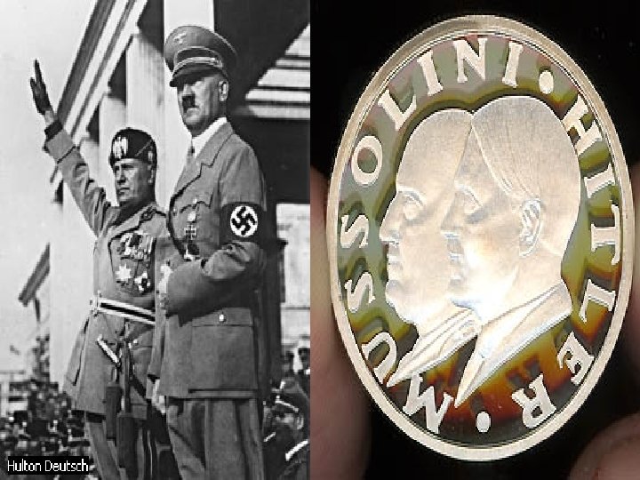 • • • Mussolini ---> znal spretno slepiti ljudi Z denarjem od bogatašev kupoval orožje Leta 1922 vkorakal v Rim Tu se začne obdobje fašizma Najhujši sovražnik ---> komunizem Največja žrtev ---> liberalna demokracija 1939 se z Hitlerjem združita Državi povezani v os Rim – Berlin 1940 začne z vojno
