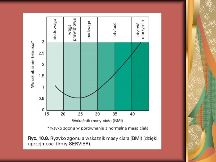 BMI wartość prawidłowa 19 -25 nadwaga 25 -30 otyłość >30 skrajna otyłość >40