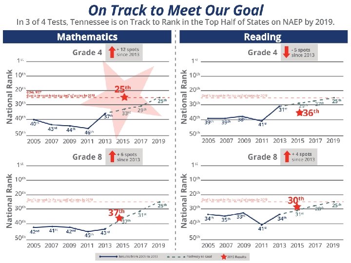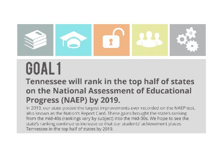 In 2011 TN set a goal to be the fastest improving state on NAEP by 2015. Tennessee saw NAEP as a barometer by which to measure the success of the education reforms we put in place. This goal created greater awareness of NAEP by districts and schools.