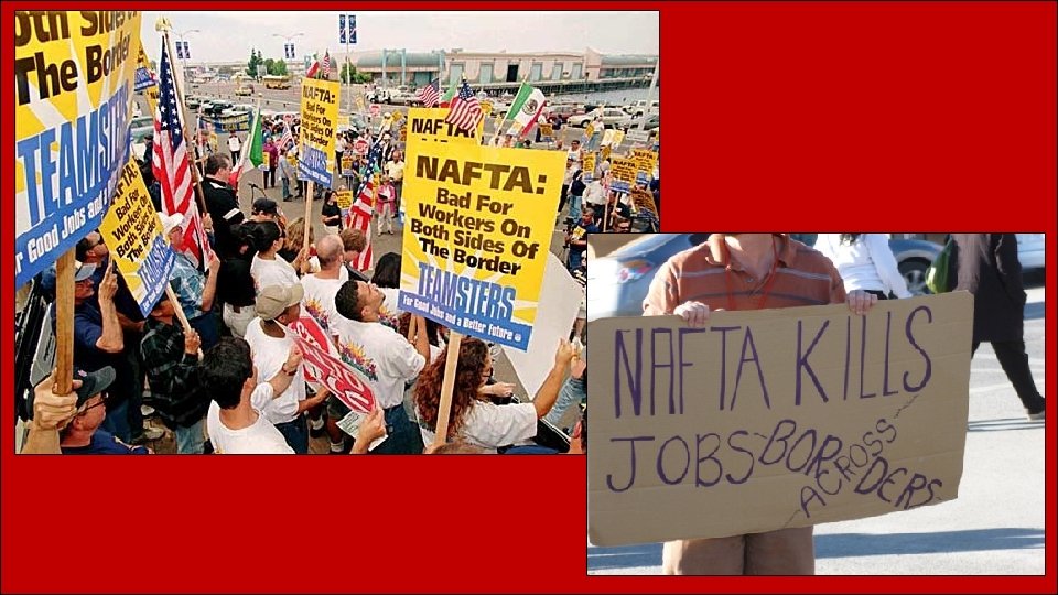 US Factory Worker • As a result of NAFTA, many U. S. manufacturers moved their operations south of the border where employees were cheaper and environmental standards lower. • Many American factory workers lost their jobs because of this. • Unemployment in the US rose after NAFTA went into effect.