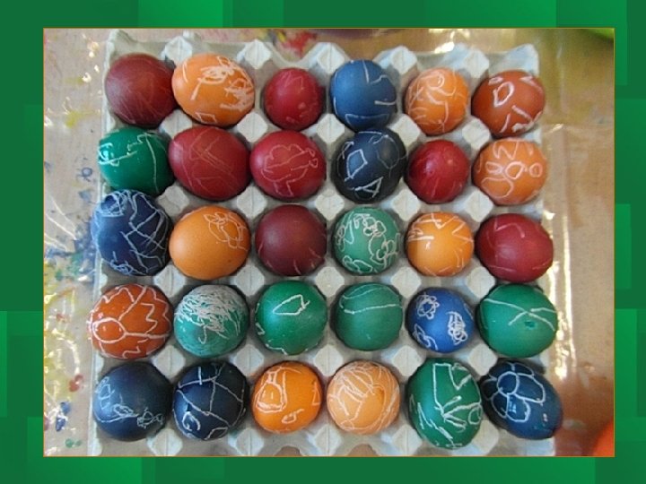 A húsvéti tojás története A locsolásért cserébe hímes, de legalábbis festett tojás jár a fiúknak. Sok változata és technikája létezik mind a tojáshímzésnek, mind a festésnek. Egy legenda szerint mikor Krisztus a keresztfán függött, előtte egy asszony egy nagy kosár tojással állt meg imádkozni, és Krisztus vére rácseppent a tojásokra. Ezért szokás a húsvéti tojást pirosra festeni. A vallásos magyarázaton túl a piros szín nemcsak a vért, az életet, hanem a szerelemet is jelképezi, és ezért a piros tojás szerelmi ajándék, szerelmi szimbólum is lehet húsvétkor.