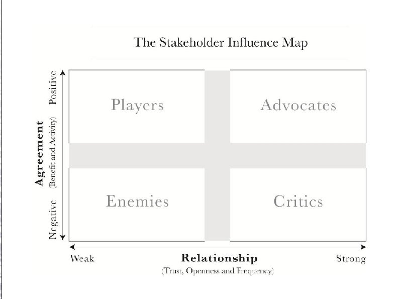 Step 3 : Analyse: Map the position of each stakeholder Relationship: Trust Openness Frequency Agreement: Benefit Agreement Activity