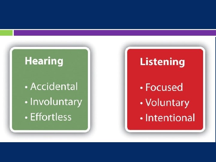 Top Down and Botton Up Listening Botton Up Top Down ü It focuses on macrofeatures of discourse such as the speaker's purpose and the discourse topic. ü ü Identify sounds or lexical items according to their linguistic function. Use phonological cues to distinguish between positive and negative sentences or statements and questions.