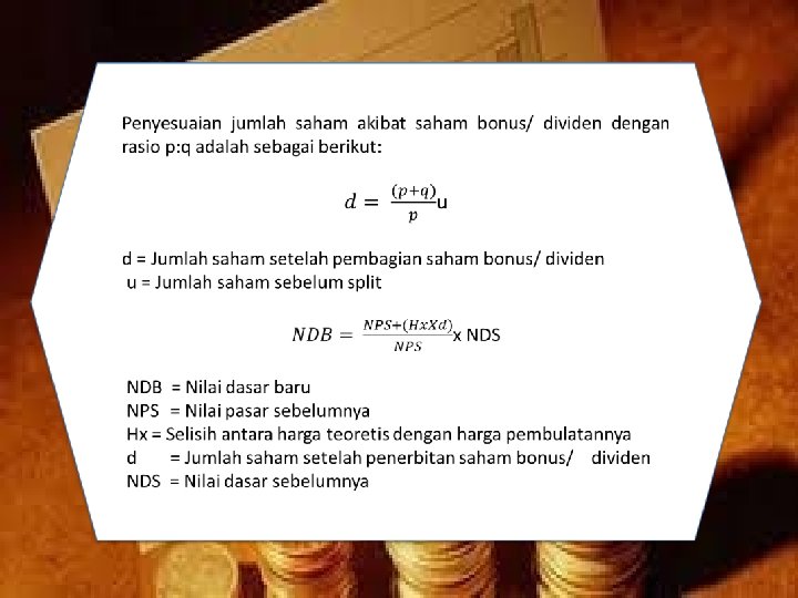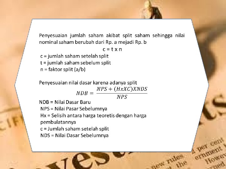 PERHITUNGAN HARGA TEORETIS DAN PENYESUAIAN NILAI DASAR Split Saham (Stock Split)