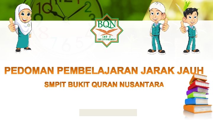 PRINSIP PEMBELAJARAN BQN 1. Berorientasi pada kesejahteraan, kenyaman, dan kesehatan santri baik secara fisik maupun psikis 2. Pembelajaran hendaknya bersifat adaptif menyesuaikan dengan kondisi individual santri 3. Mengimbangkan kolaborasi antara pembelajaran online dan ofline 4. Memastikan orang tua terlibat dalam memonitor perilaku belajar santri selama proses virtual learning 5. Memastikan pemberian feed back dan evaluasi yang terstruktur setelah pendampingan belajar/pemberian tugas