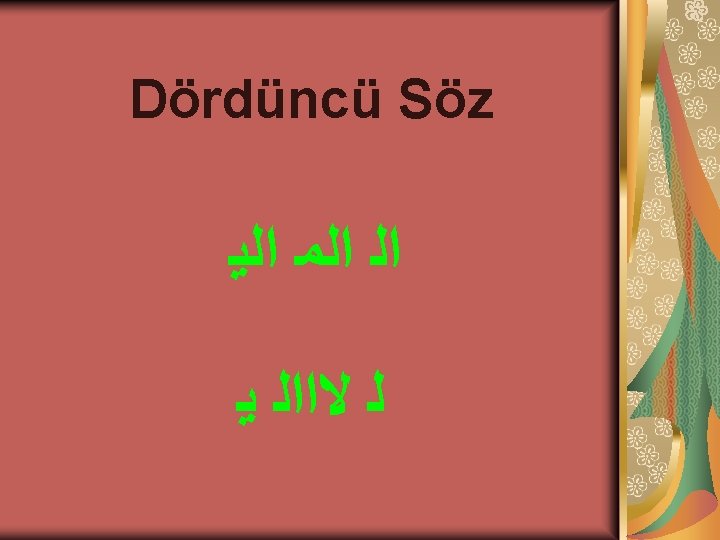 . . . . Şu kısa tarîkın evradı: Øİttiba-ı sünnettir, ØFeraizi işlemek, ØKebairi terketmektir. ØVe bilhâssa namazı ta’dil-i erkân ile kılmak, namazın arkasındaki tesbihatı yapmaktır