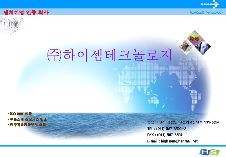 대표이사 이력 ▣ Name: 백 윤천(Youn Cheon, Baek) TEL: 041 -587 -6500 FAX: 041 -587 -6503 Mobile: 010 -6206 -7556, Email: ycbaek 7@hanmail. net 회사 주소: 충남 아산시 음봉면 산동리 4산단로 131 -6번지 ▣ Career : (주)아남반도체(현, 앰코코리아) 근무 – 8 Years (주)큐텍씨스템즈 CS/국내외 영업 이사 ---- 13 Years Vis. Dynamics사(말레이지아) 한국 지점장 ㈜하이셈테크놀로지 대표이사 ▣ 주요 장비경력 : Wafer Inspection 장비, 2 D/3 D Package Inspection 장비, Buffer Handler Test Handler, Tape and Reel, Socket & Pogo pin, Saw 장비 등등