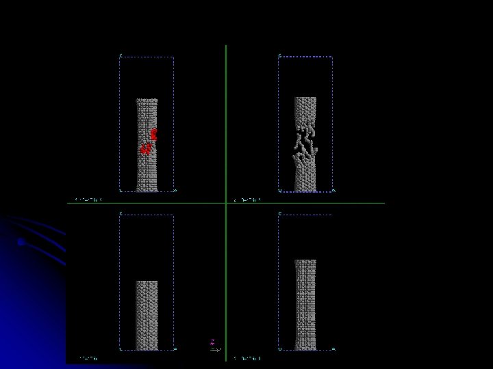 Simulation results without walls and with flat walls l Targeted system: l l The simulation without walls l l l 60% H 4 T 4 surfactant, 40% water solvent Hexagonal close packing cylindrical structures From the figure, d spacing = 10. 7σ , unit cell parameter = 12. 4σ The nano-structures prepared by the evaporation-induced dip-coating process The simulation results with flat walls l Whether walls are hydrophilic or hydrophobic, cylindrical structure always parallel to the wall and sits on the (1, 0, 0) plane Self-assembly structure with hydrophobic (left) and hydrophilic (right) walls, according to oil density