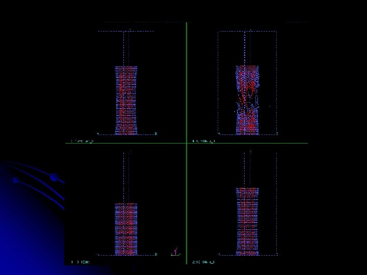 Simulation results from our simulation program (continued) l 60% water, 40% surfactant – spherical structure, plot according to the surfactant tail density l 7. 3% water, 32. 7% oil, 60% surfactant – intermediate bicontinuous structure (might be gyration structure), plot according to the water density l 40% water, 60% surfactant – hexagonal close packing cylindrical structure, plot according to the surfactant tail density Left: oil concentration profile, Right: water concentration profile