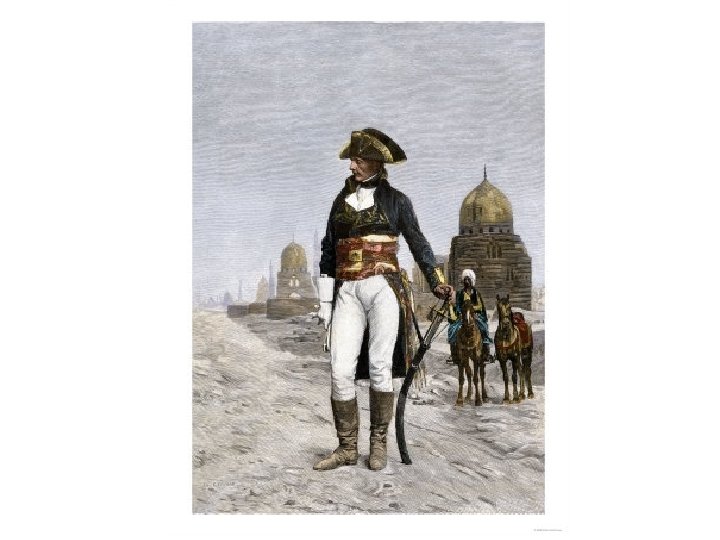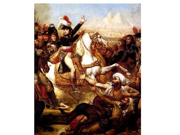 Napoleon and Propaganda • Although the Egyptian campaign was a military disaster, Napoleon was able to exploit the French people's fascination with the mysterious country to his advantage. • He used the press to keep the campaign, and himself, in people’s minds. • Street vendors in Paris sold pictures with palm trees, with pyramids, or with a general covered by plumes who harangues his troops and massacres the infidels. • Paris theaters produced spectacles about the "Victory of the Pyramids. " • Paintings of the time show him returning to France, grandly victorious, with a star of destiny shining over his ship. • By the time Napoleon returned to France from Egypt in August 1799, he was famous.