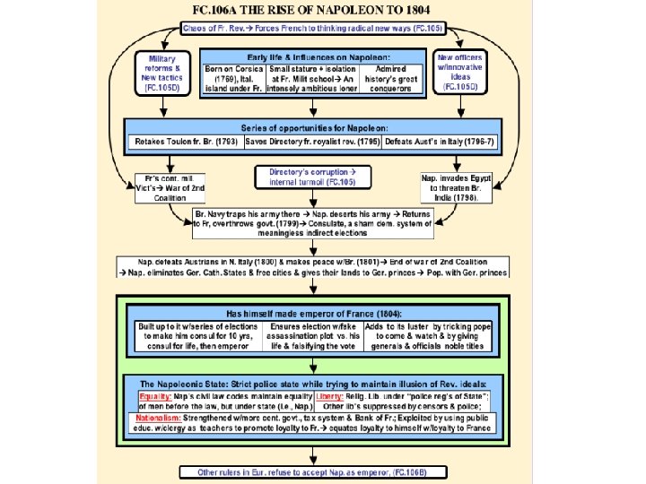 Why Napoleon Had Support • The leading elements of the 3 rd Estate (government officials, landowners, doctors, lawyers, bankers) had achieved most of their goals by 1799 – Had abolished hereditary privilege, allowing people of talent to achieve wealth and status – Were not really excited about sharing wealth with the poor • Peasants had also gotten what they wanted – Got their land – Got rid of feudal privileges • People were tired of the chaos, and Napoleon appeared to be the man who