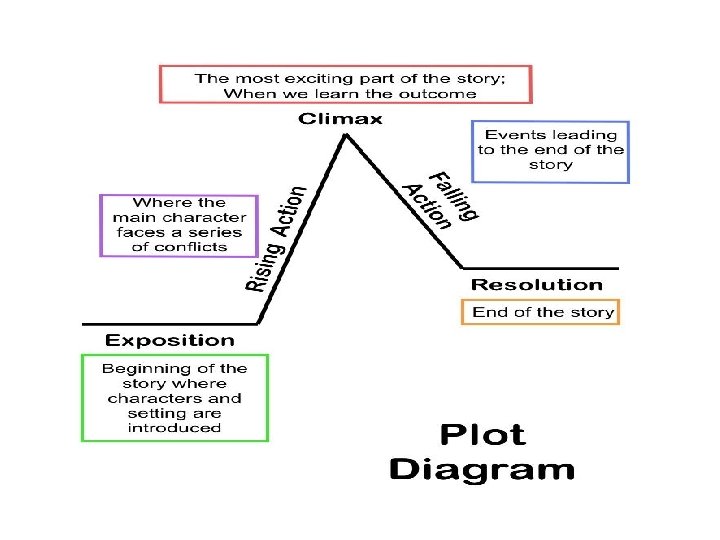 Plot Establish a context and point of view Introduce a narrator and/or characters Organize the sequence of events